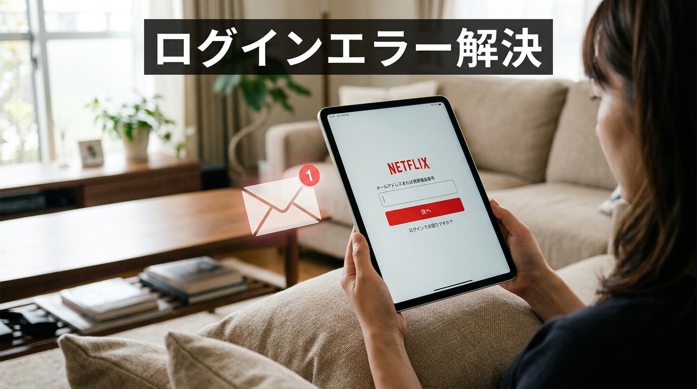 iPadのNetflixアプリの一部バージョンや環境では、従来のパスワード入力ではなく、登録メールアドレスに送られてくる4桁の「ログインコード」を入力してログインする方式に変わっている場合があります。この場合、パスワード入力欄は表示されません。